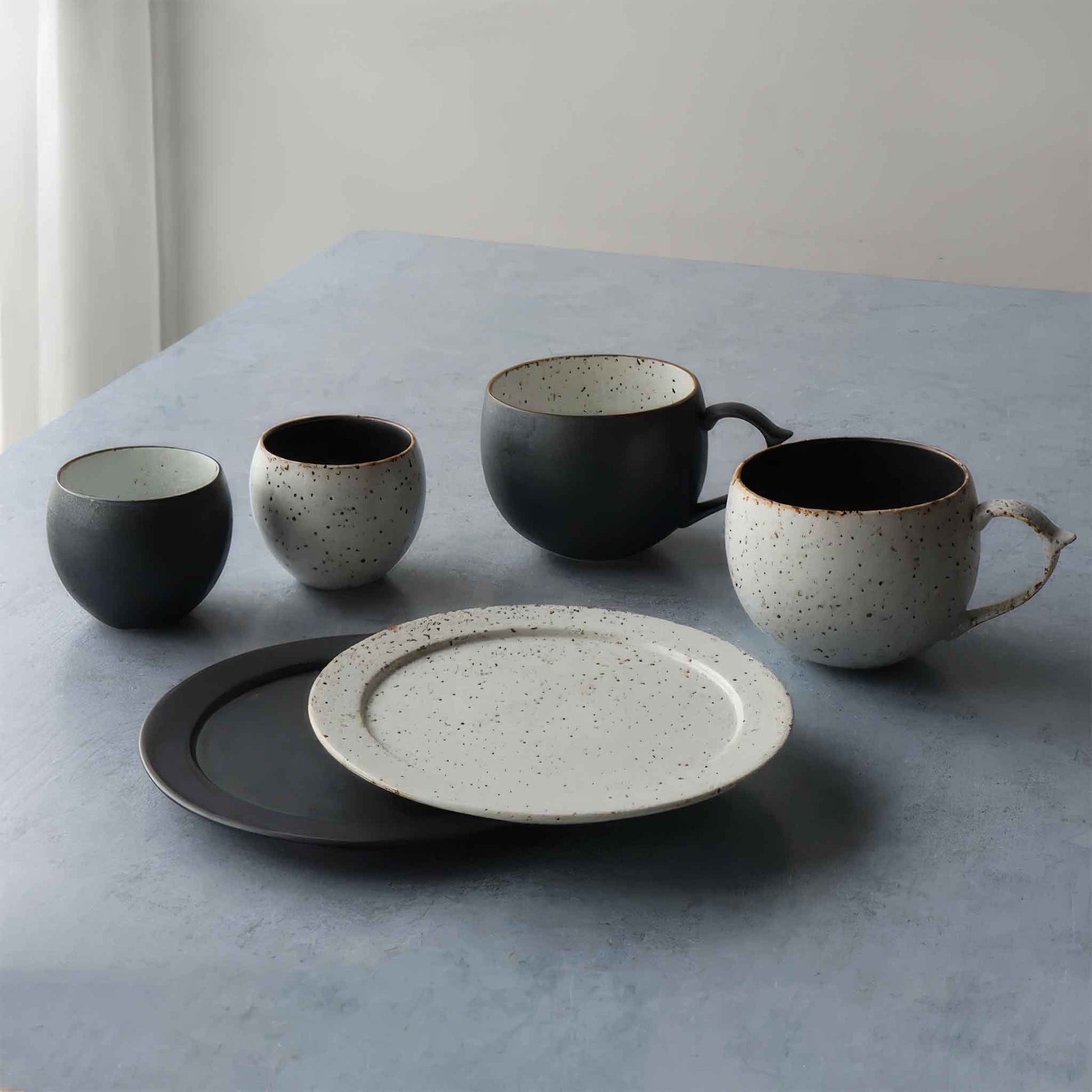 B&W Sabi Handmade Mug with Saucer - Black/White
