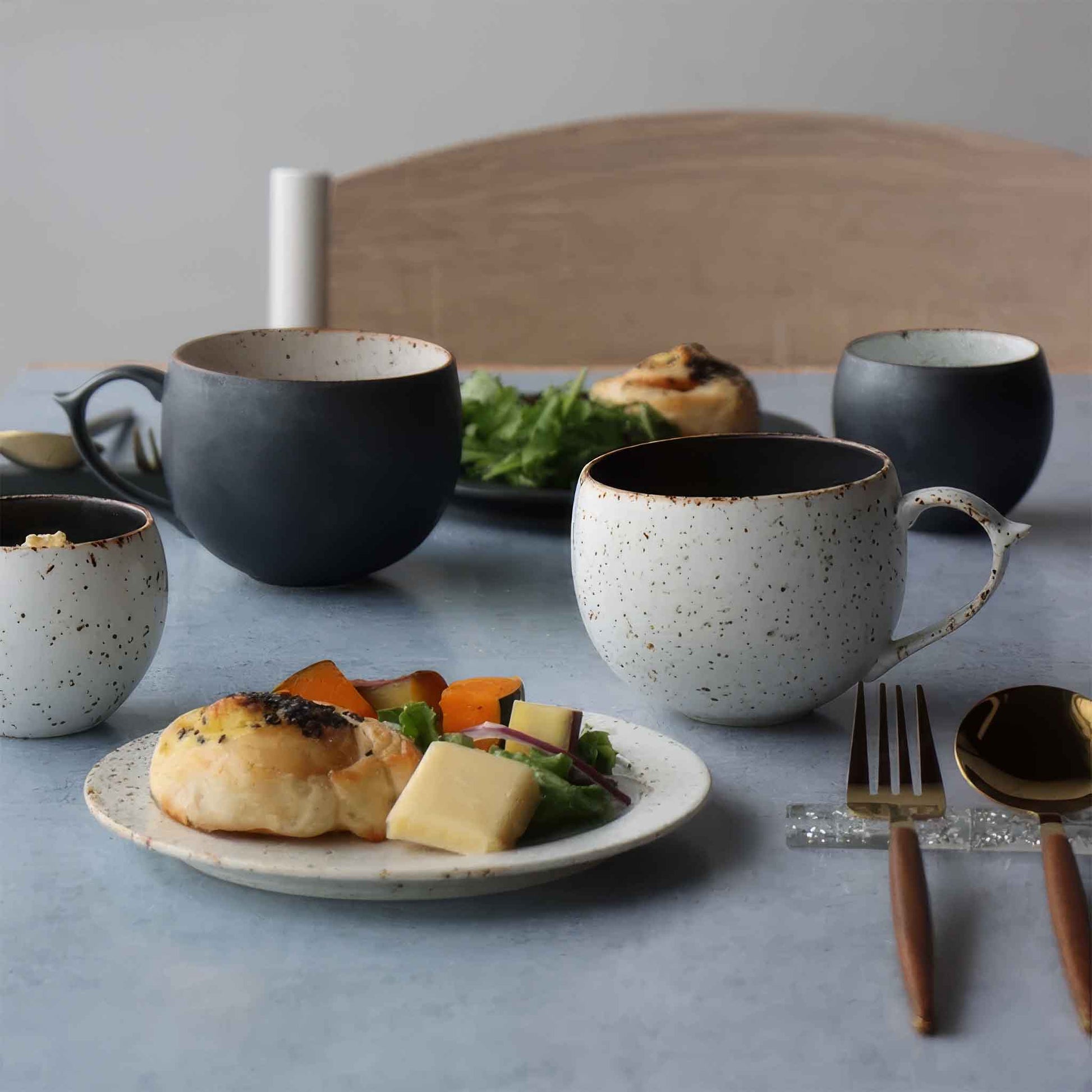 The B&W Sabi series pairs minimalist black-and-white tones with a rustic, mottled finish that adds warmth and texture to your table. Its charming, chunky mug shape feels cozy in the hands - perfect for generous servings of café au lait, milk tea, or your favorite morning drink. When the weather turns cold, it doubles beautifully as a hearty soup cup. A simple, stylish piece for everyday comfort.
